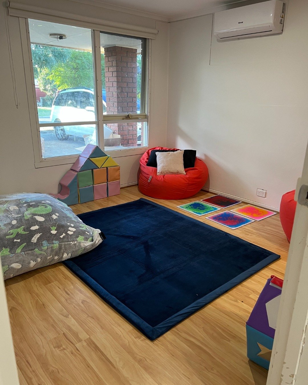 Our team has followed all therapy recommendations. The home includes sensory-friendly areas, cozy bedding, functional staff spaces, and features like a trampoline to support movement and play. Every element was chosen with the participant’s well-being in mind.